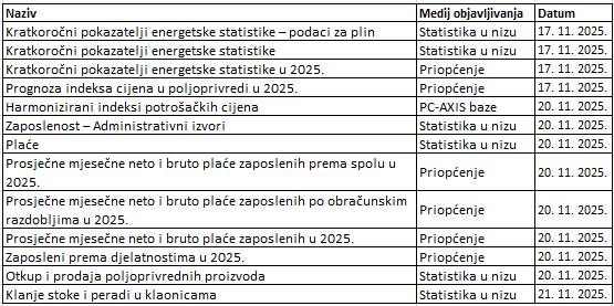 Tjedni kalendar objavljivanja statističkih podataka, 17. - 21. studenoga 2025.