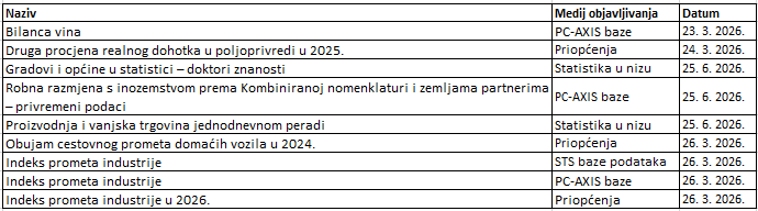 Kalendaru objavljivanja statističkih podataka.