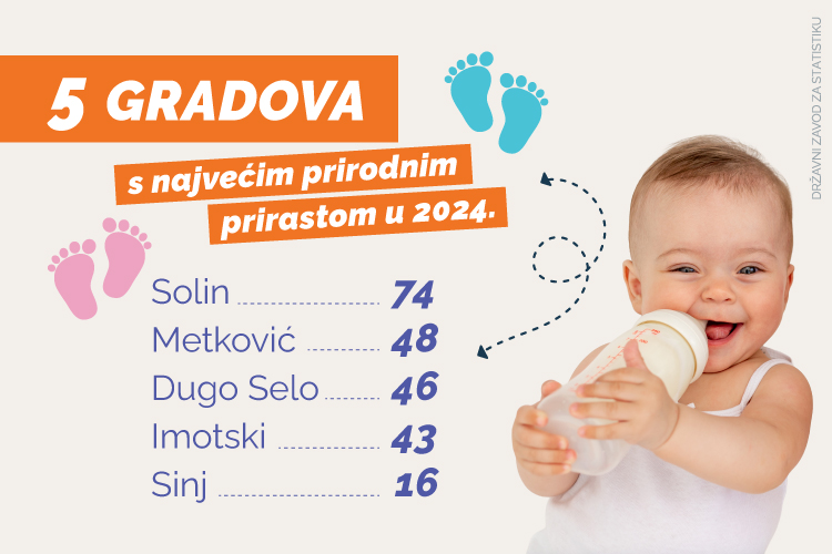 U Hrvatskoj je, prema posljednjoj procjeni stanovništva sredinom 2024., živjelo 692 835 osoba starosti 0 - 18 godina, a iste godine živorođeno je 32 069 djece. Više je rođeno dječaka (51,7%) nego djevojčica (48,3%). Iako je u odnosu na 2023. rođeno za 0,3% manje djece (101 dijete manje), ipak postoje gradovi koji se ponose time da su u 2024. ostvarili pozitivan prirodni prirast (veći broj rođenih od broja umrlih).